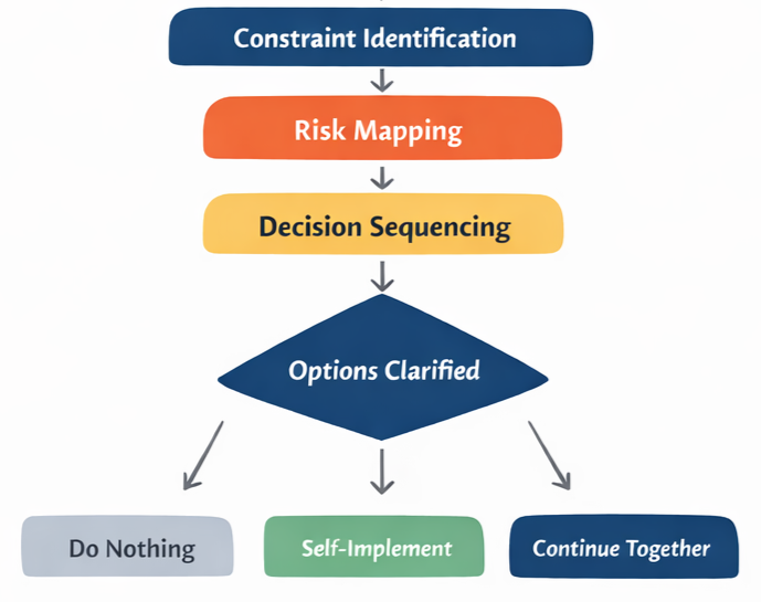 If you're a business owner looking to grow, improve operations, reduce risk, or plan your exit, we offer a structured yet flexible approach to help you clarify your options and move forward with confidence.