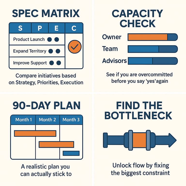 Most owners have more ideas than capacity. You do not need another big plan that sits on a shelf. You need a clear view of: